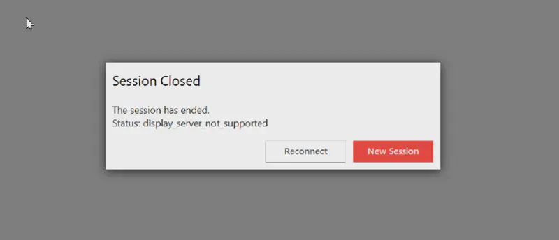 Muncul error Display_Server_Not_Supported saat akan me-remote PC dengan OS Ubuntu. Untuk desktop environment menggunakan GNOME.