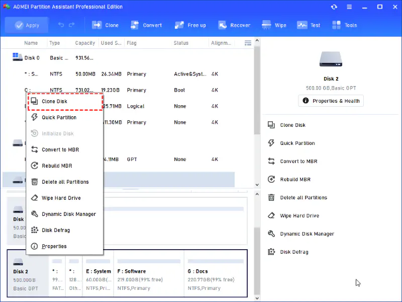 Pada main interface pilih HDD lalu klik Clone Disk