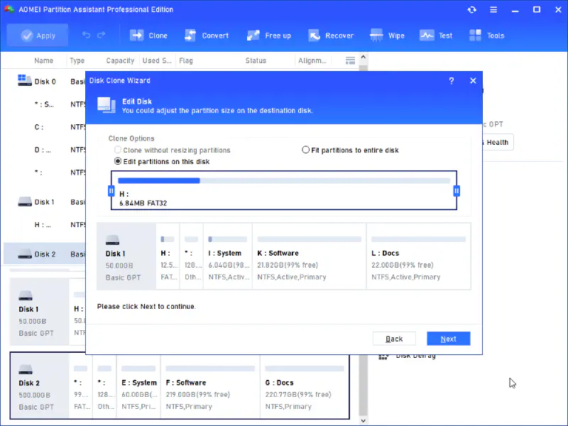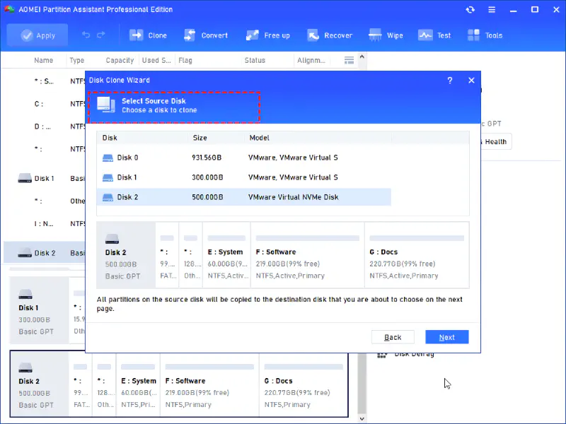 Pilih HDD sebagai source disk dan SSD sebagai destination disk